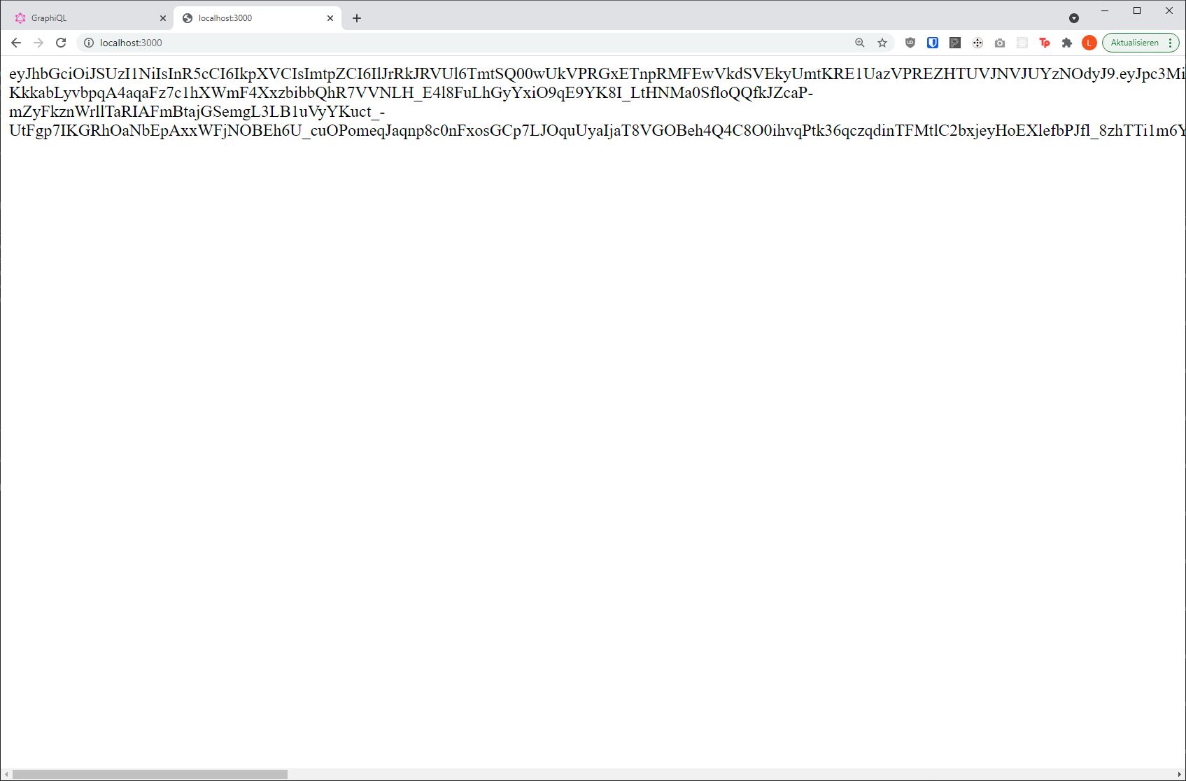 In order to retrieve an access token, we first need to set up an Auth0 application and an authentication route. For the sake of this guide and in order to reduce complexity we will simply add an route to our fastify http server that renders some HTML with a <script> tag that invokes the Auth0 JavaScript SDK (referenced via a CDN) and then appends the authentication token to the document body. It should still give you a feeling how you can integrate the Auth0 SDK with your favorite Frontend Framework. If you are using Next.js you should check out nextjs-auth0.